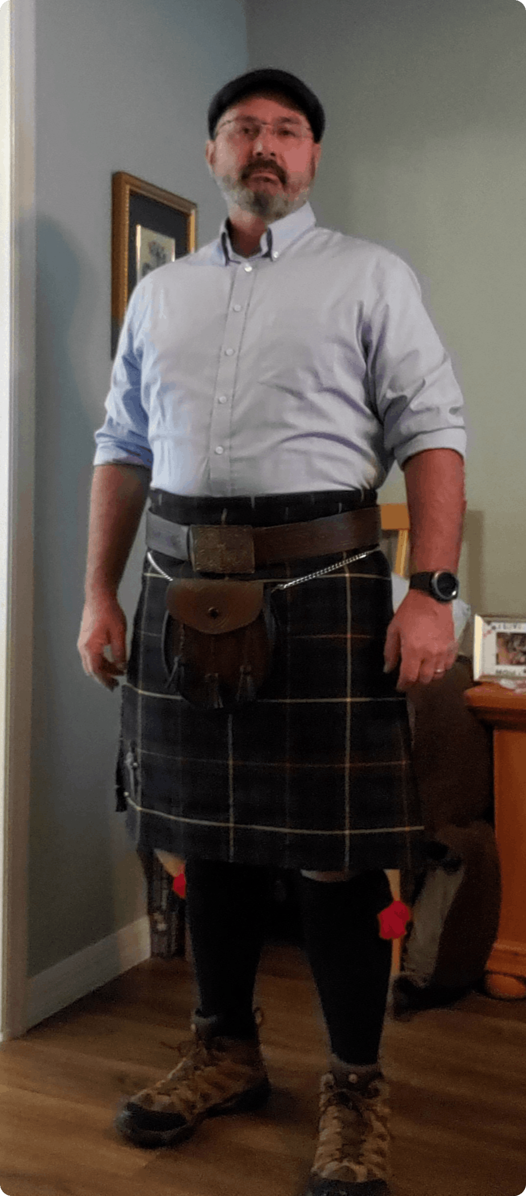 Můj nový kilt sedí perfektně a je velmi pohodlný na nošení. Dokonce přitahoval pohledy a vyvolal zjevnou žárlivost! Jsem velmi, velmi spokojený se svou volbou. Děkuji, Scotland Clothes.